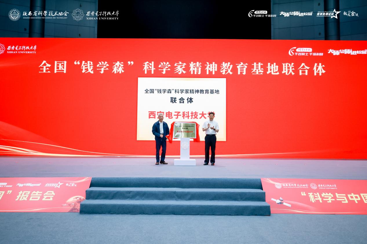 为了更好弘扬和传承钱学森科学家精神,在《钱学森与中国航天》课题研究组的指导帮助下,上海交通大学钱学森图书馆、西电空间学院等26家单位共同发起成立了全国“钱学森”科学家精神教育基地联合体。报告开始前,查显友和陈大亚共同为全国“钱学森”科学家精神教育基地联合体揭牌。